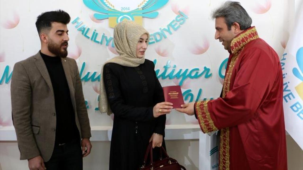 Şanlıurfa'da evlenme kararı alan aralarında Suriyeli sığınmacıların da bulunduğu 38 çift, nikahlarını Sevgililer Günü'nde kıydırmayı tercih etti.