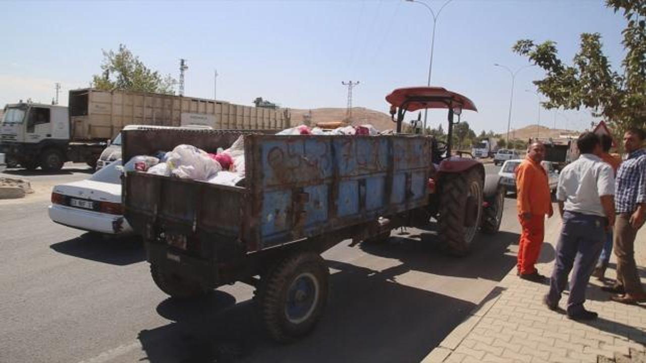 Yenice Mahallesi'nde temizlik görevlisi Ümit Çiftçi (32), traktöre yükledikleri çöpleri toplama alanına götürmek için aracın arkasında oturdu.