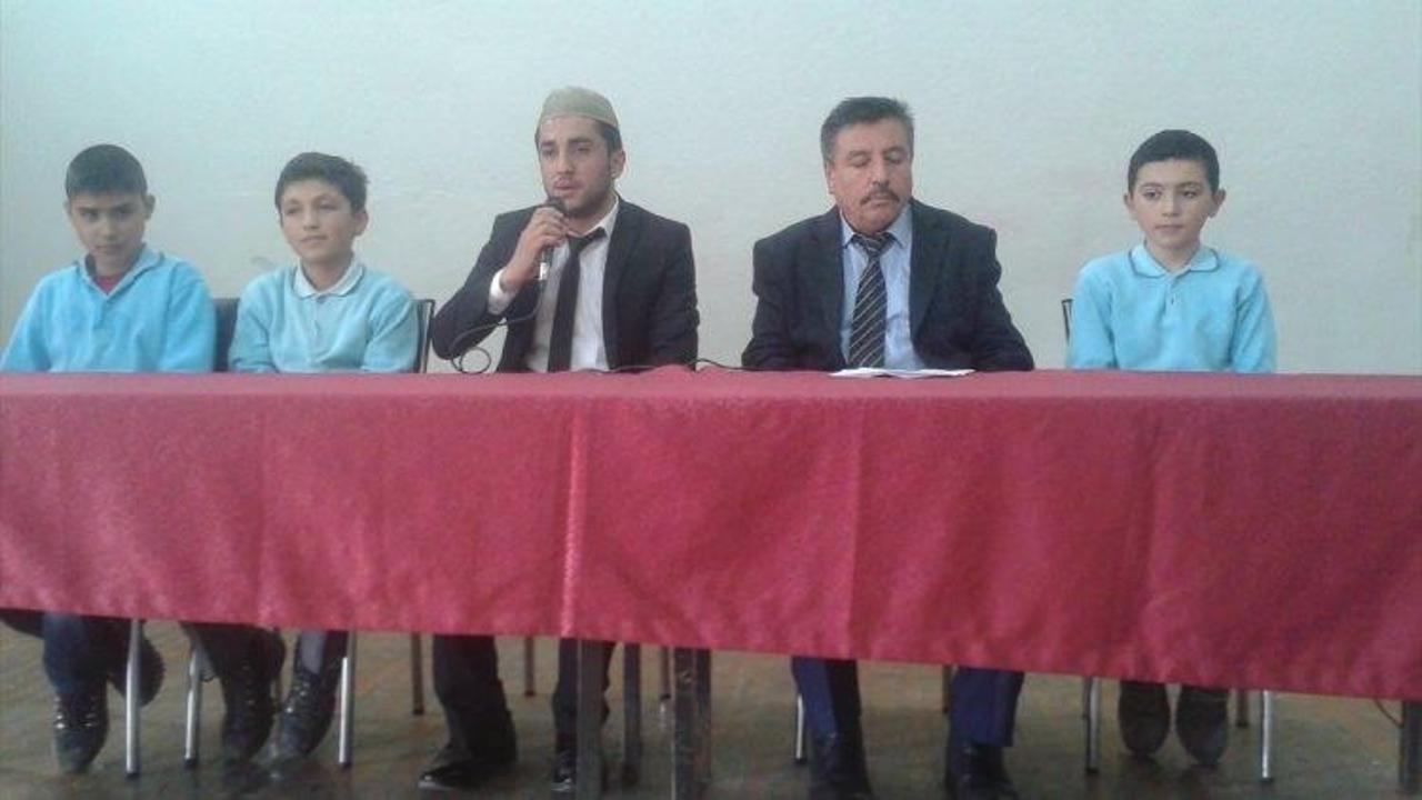 Okulun çok amaçlı salonunda öğretmen ve öğrencilerin katılımıyla Kuran-ı Kerim okundu, ardından hatim duası yapıldı.