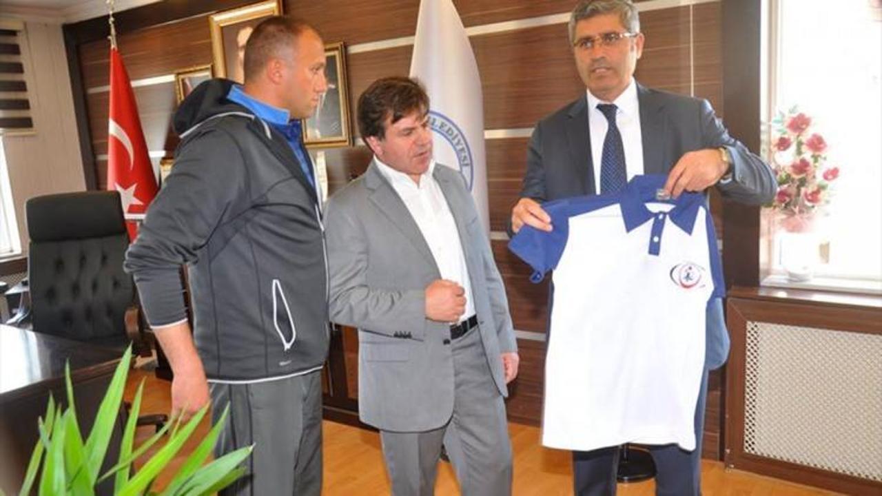 Ziyaretin sonunda Yüksel, öğrecilere forma hediye etti.