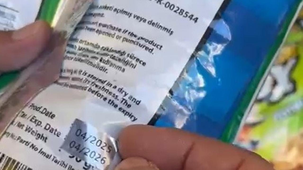 Yapılan denetimde markette cipslerin son kullanma tarihini gösteren etiketin sonradan yapılan ekleme ile değiştirildiği tespit edildi.