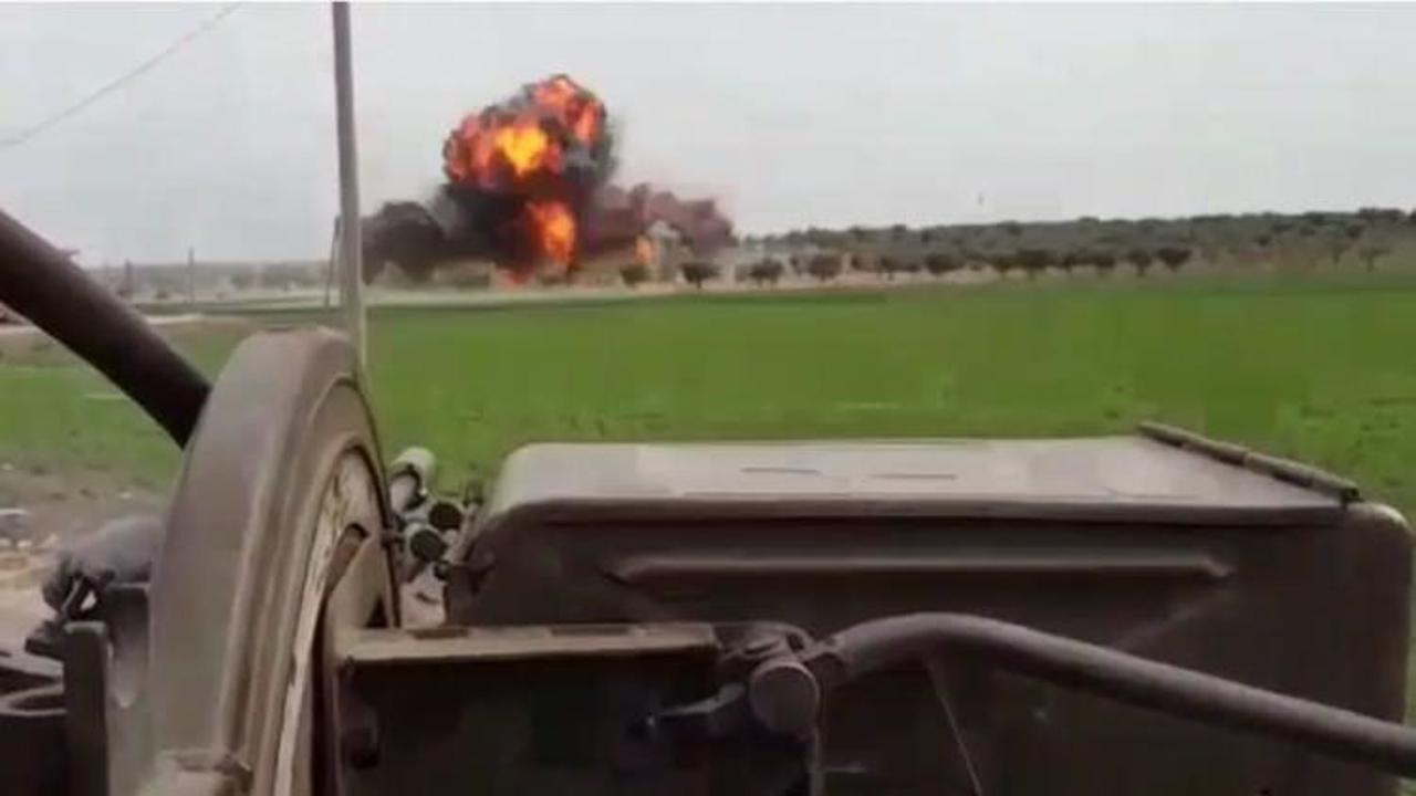 Doçka adı verilen uçaksavar silahıyla yapılan atışların ardından mühimmat deposu imha edildi. Uçaksavar silahıyla yapılan atışlar ve mühimmat deposunun patlama anı cep telefonu kamerasına yansıdı.