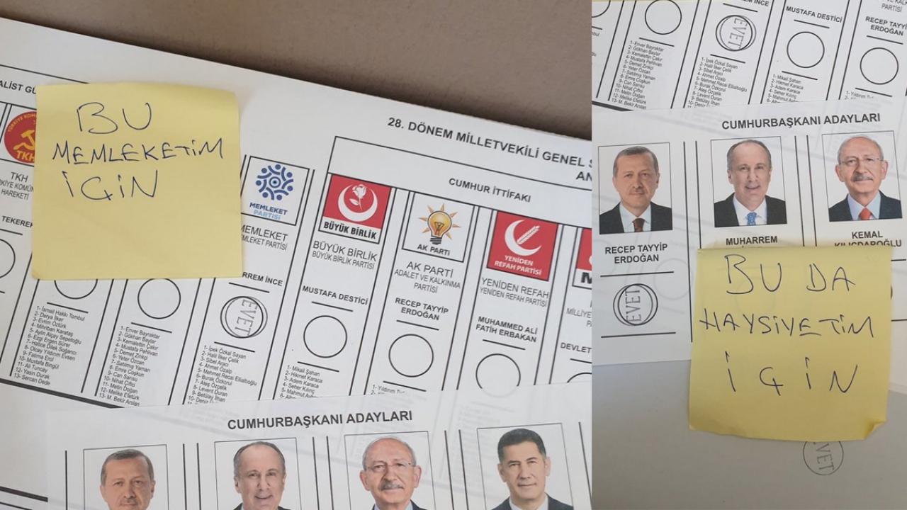 Cumhurbaşkanı ve 28. Dönem Milletvekili Genel Seçimleri için oy verme işlemi devam ederken Memleket Partili seçmenler tepkisini bir oyunu Memleket Partisi'ne bir oyunu da Erdoğan'a vererek gösterdi.