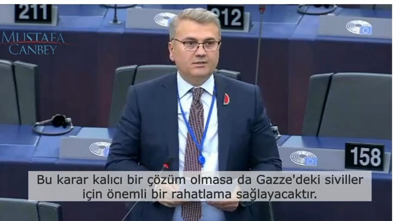 İsrail'in orantısız sivil kayıplardan sorumlu olduğunun açık olmasına rağmen hiçbir şey yapılmadığını belirten Canbey; “Uluslararası Adalet Divanı’nın, İsrail'in ateşi kesmesi, sivilleri öldürmeyi durdurması ve bölgeye insani yardımın girmesine izin vermesi gerektiğine hükmetmiş olsa da insanlar hala acı çekmektedir. İsrail ve İran arasında yaşanan son silahlı çatışma bir kez daha göstermiştir ki Gazze'de kalıcı bir çözüme ulaşılmadığı sürece Orta Doğu'da barış ve istikrar olmayacaktır. Meclis, İsrail'den UAD'nin kararına uymasını ve bu kararı uygulamasını istemelidir. Bu karar kalıcı bir çözüm olmasa da Gazze'deki siviller için önemli bir rahatlama sağlayacaktır.” dedi.
