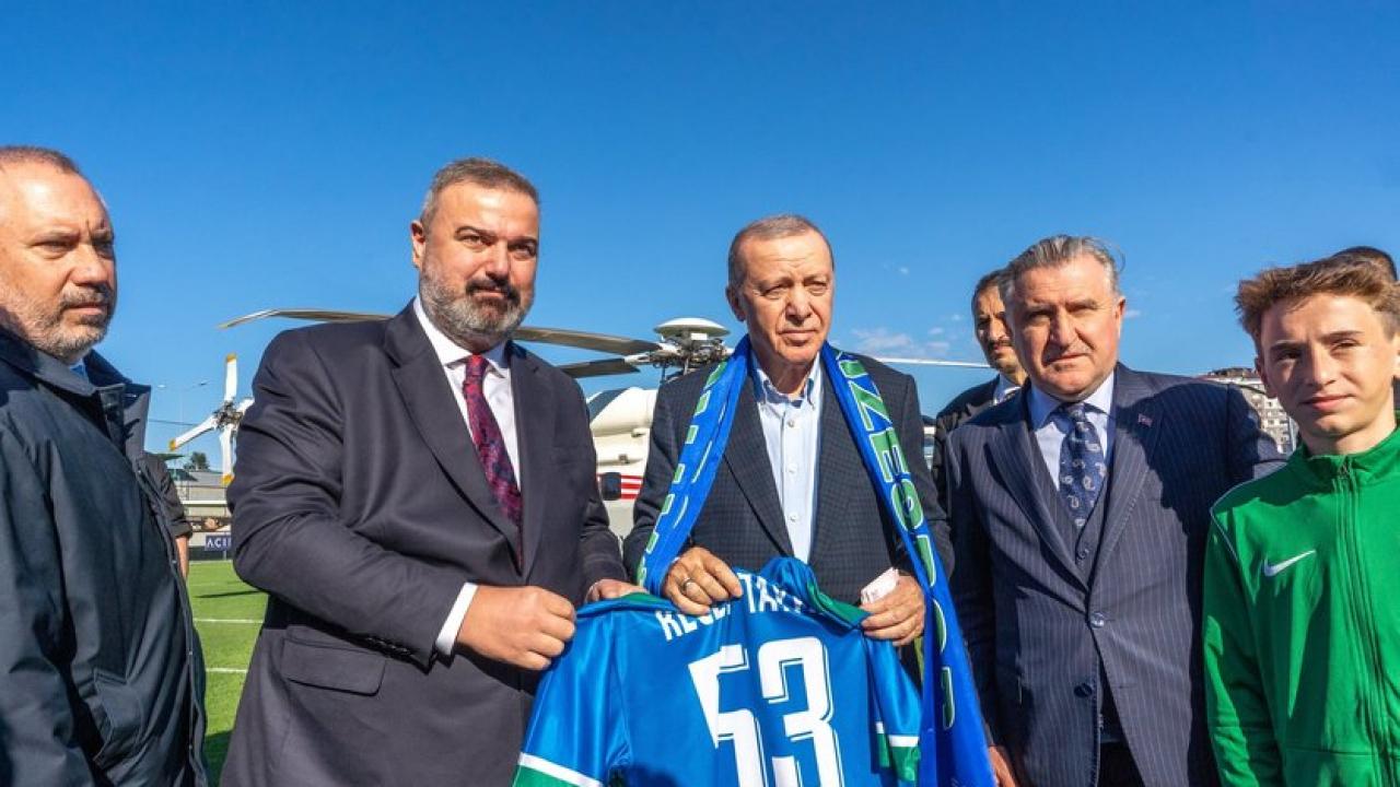 Erdoğan, Ayder Yaylası'ndaki incelemelerinin ardından, helikopterle Çaykur Rizespor'un tesislerine geldi.