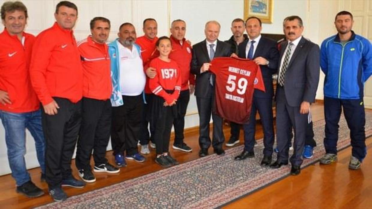 Trakya Veteranlar Ligi Başkan Yardımcısı Zafer Soykırlı, Vali Ceylan'a Trakya Veteran Karması takımının formasını hediye ederek gerçekleştirilen organizasyon ve elde edilen başarılarla ilgili bilgi verdi.