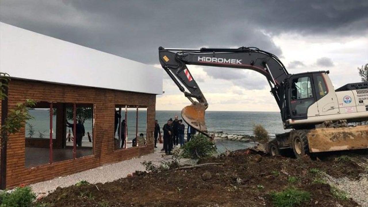 Trabzon'un Araklı ilçesinde kaçak yapıldığı gerekçesiyle bir restoran ve altındaki plaj yıkıldı.
