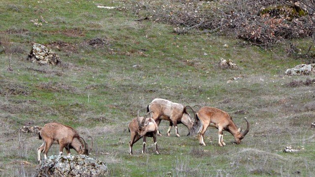 Tunceli'de yaban keçilerinin bahar keyfi