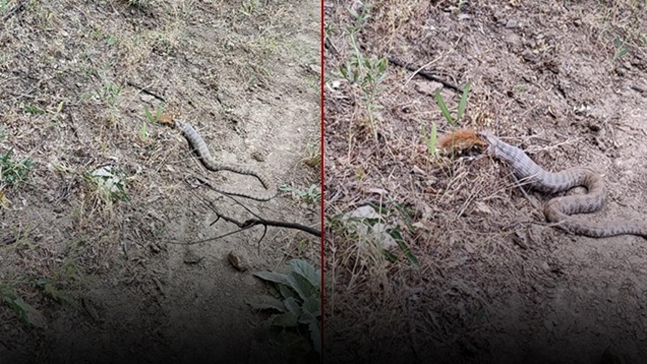 Tunceli'de bir engereğin sincap yuttuğu anlar cep telefonu kamerasına yansıdı.