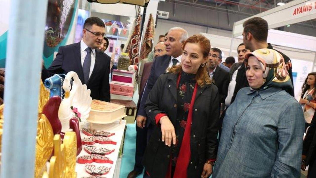 Gürpınarlı kadınların yaptığı kilim hakkında bilgi de alan Zorluoğlu, ardından stanttan ayrıldı.