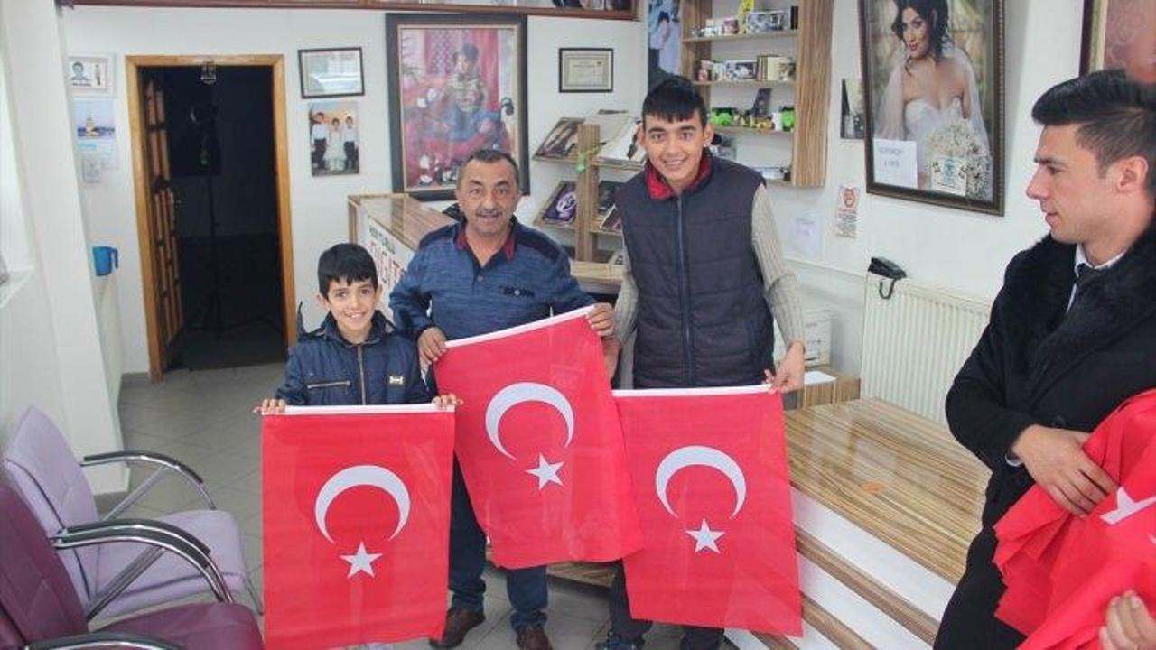 Belediye Başkanı Suphi Daştan, gazetecilere yaptığı açıklamada, Zeytin Dalı Harekâtı’nda görev yapan askerlere destek ve milli duyguları yaşatmak için ilçe merkezinde bulunan esnaf ve vatandaşlara Türk bayrağı dağıtıldığını söyledi.
