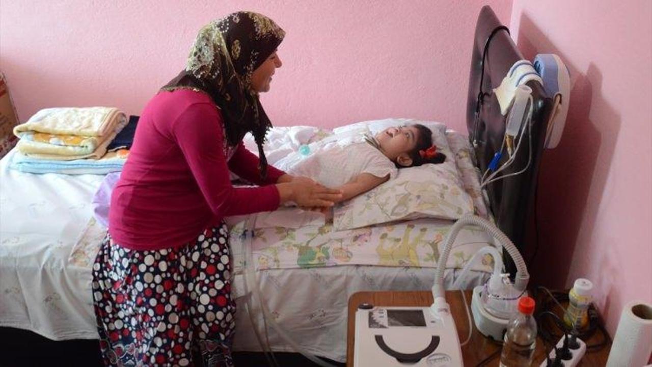 "Evde makineyle bakıyorum. Günlük her gün pansumanını yapıyorum. Akciğer hastası ve beyninde su toplaması var. Sırtında omurga eğriliği ve gelişim geriliğiyle kalbinde üfürük var. Her gün kızımla ilgileniyorum. Hastaneye ambulansla getiriyorum. Boğazındaki parçayı değiştiriyorum. Bazen geceleri başında uyuyakalıyorum. Bütün hayatımı kızıma bağladım. Bana doktoru, 2,5 yaşına kadar ümit verdi. Allah'a şükür 6 yaşına girdi ve bakımı sayesinde yaşıyor. Bakım parası ile geçiniyorum. Elimden geldikçe bakmaya çalışıyorum. Bir isteğim yok. Gelenlerden ve kapımı açanlardan Allah razı olsun. Elektrik olmadığı zaman jeneratör çalıştırıyorum. Tüpe bağlıyorum. Balkonumda üç tane dolu tüpüm var."