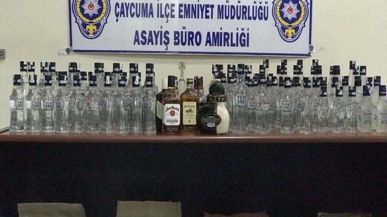 Zonguldak'ın Çaycuma ilçesinde yılbaşı öncesi yoğunlaştırılan kaçak ve sahte içki operasyonları kapsamında 129 şişe sahte içki, 474 boş alkol şişesi ile 12 şişe kaçak alkol ele geçirildi.