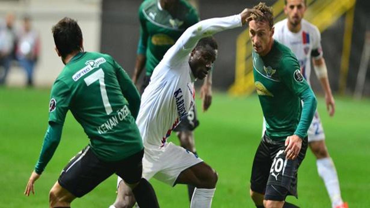 74. dakikada Kardemir Karabüksporlu Ahmet İlhan Özek'in sağ kanattan yaptığı ortada, ceza sahası içinde iyi yükselen Akpala'nın kafa vuruşunda top ağlarla buluştu: 0-1