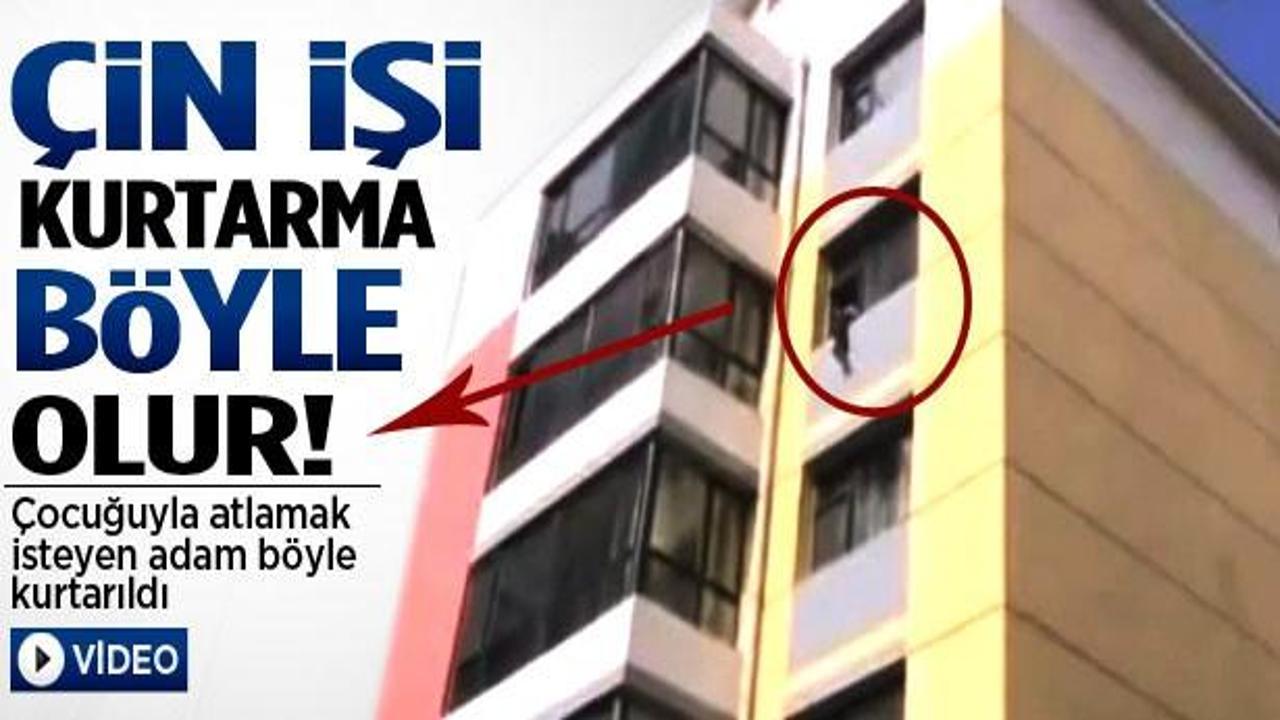 Çocuğuyla 6. kattan atlamak isteyen adam nefes kesen bir operasyonla kurtarıldı