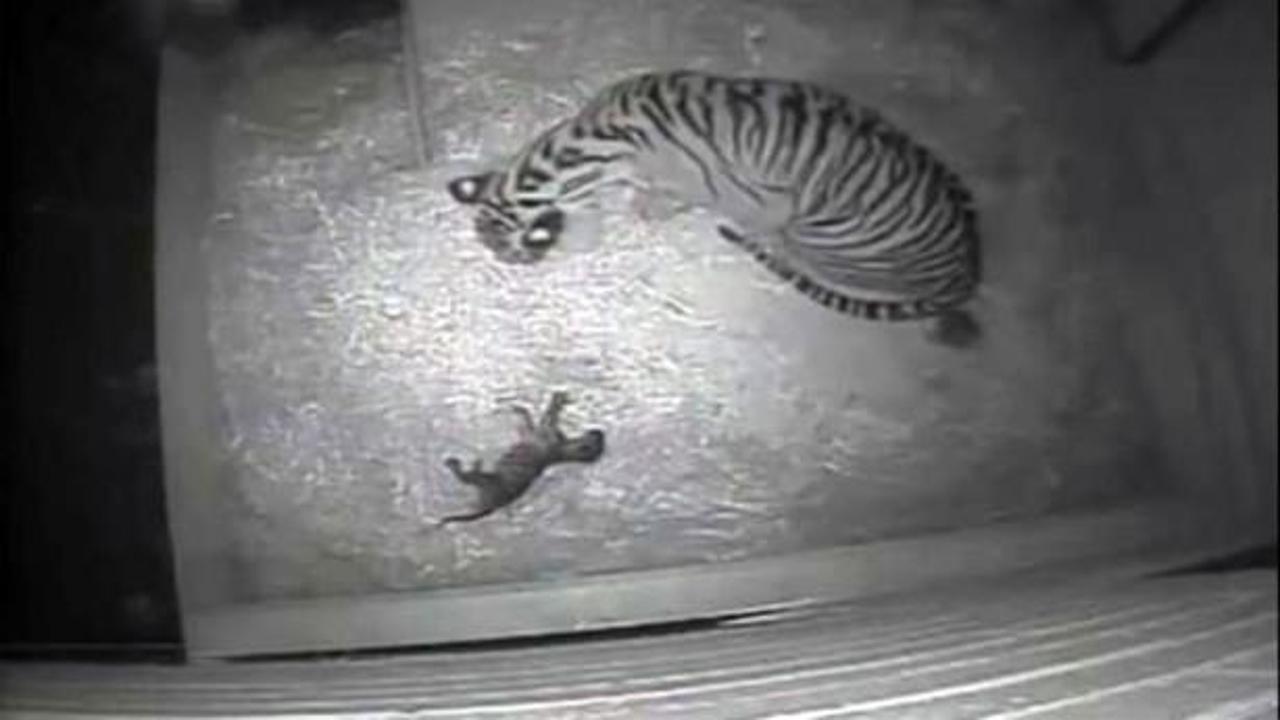 Londra Hayvanat Bahçesi'ndeki bir Sumatra kaplanının doğum anı, kafesine yerleştirilen gizli kameralarla görüntülendi.