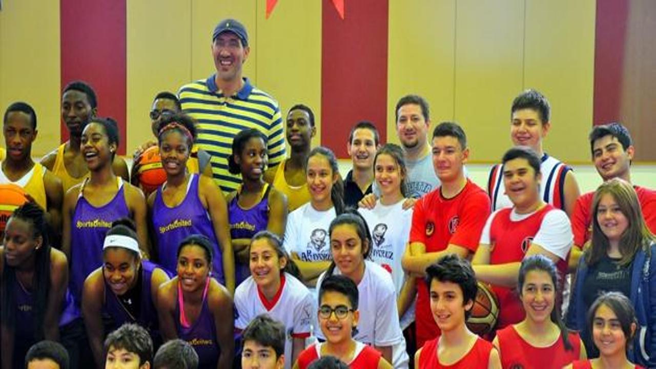 Amerikan Ulusal Basketbol Ligi'nin (NBA) eski oyuncularından 2.31 boyundaki Gheorghe Muresan ve 13 ile 14 yaş arasında olan uçan kartallar baskeol canbazlarıyla beraberinde gelen Basketbol Ligi'nin (NBA) eski oyuncularından 2.31 boyundaki Gheorghe Muresan TED, Mersin kolejinde öğrencilere basketbol dersi verdi.