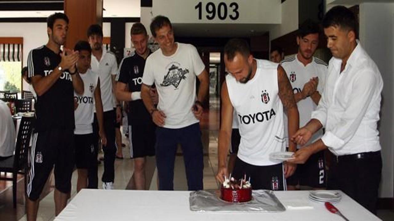 İyi bir sezon geçirmeyi dileyerek pastasını kesen siyah-beyazlı futbolcunun, ilk dilimi arkadaşı Dentinho'ya verdiği kaydedildi.