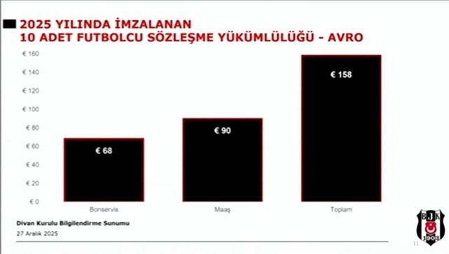 Beşiktaş Kulübü'nün 2025 yılında sözleşme imzalanan 10 futbolcuya karşı sözleşme yükümlülüğünün 158 milyon Euro olduğu açıklandı.