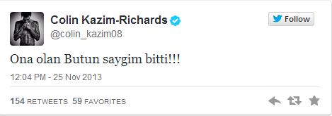 Bursaspor'da kalmak istemediğini açıklayan Batalla'ya ilk tepki takım arkadaşı Colin Kazım Richards'tan geldi.