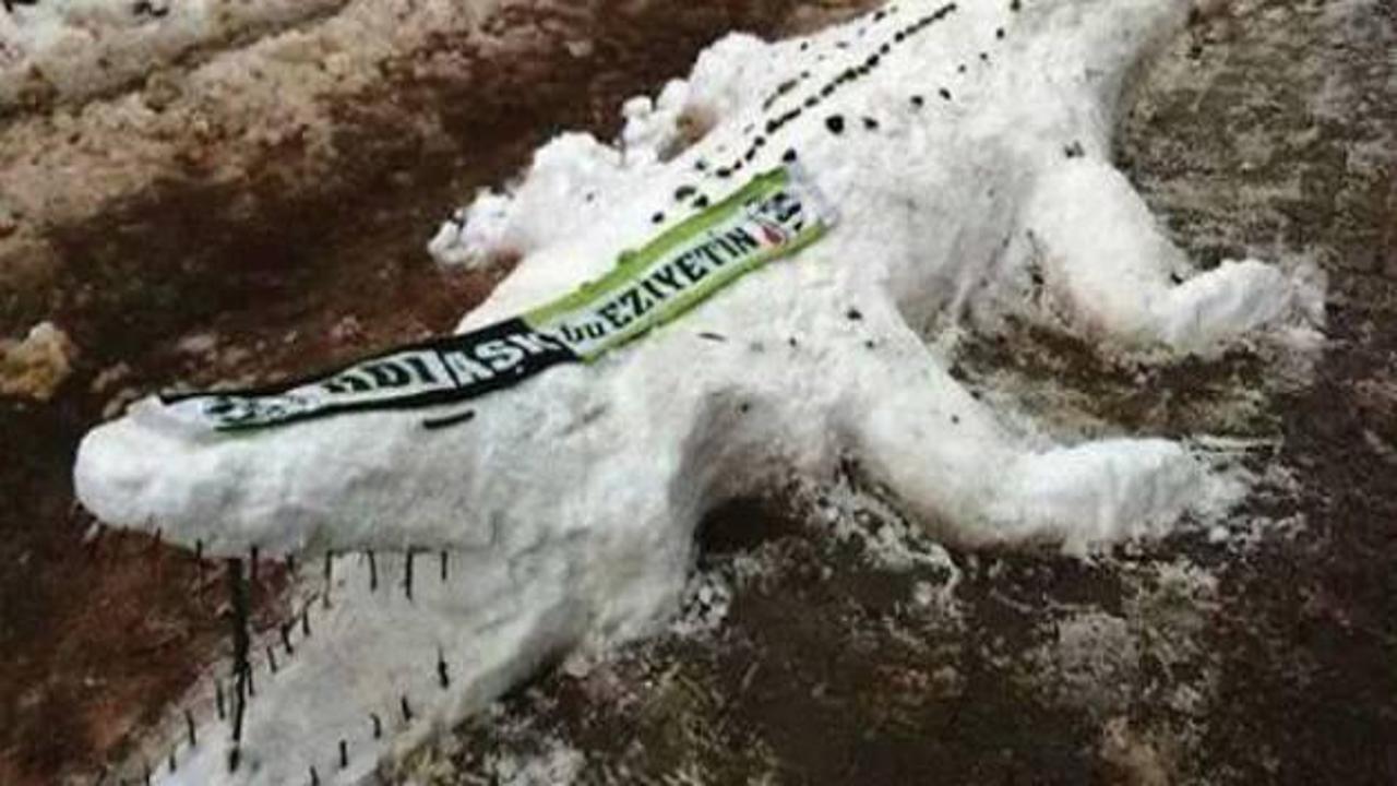 Orhangazi'nin Paşapınar Mahallesi'nde yaşayan Bursaspor taraftarı gençler, kardan timsah yaptılar, timsahın üzerine de Bursaspor atkısı koydular.