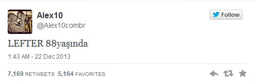 Türkiye'de forma giydiği dönemde Lefter ile tanışma imkanı bulan ve Lefter'i çok sevdiğini her fırsatta yineleyen Alex'in Brezilya ve Türkiye arasındaki saat farkına karşın Türkiye saati ile günün ilk saatlerinde yayınladığı bu mesaj taraftlı tarafsız herkesin takdirini topladı.