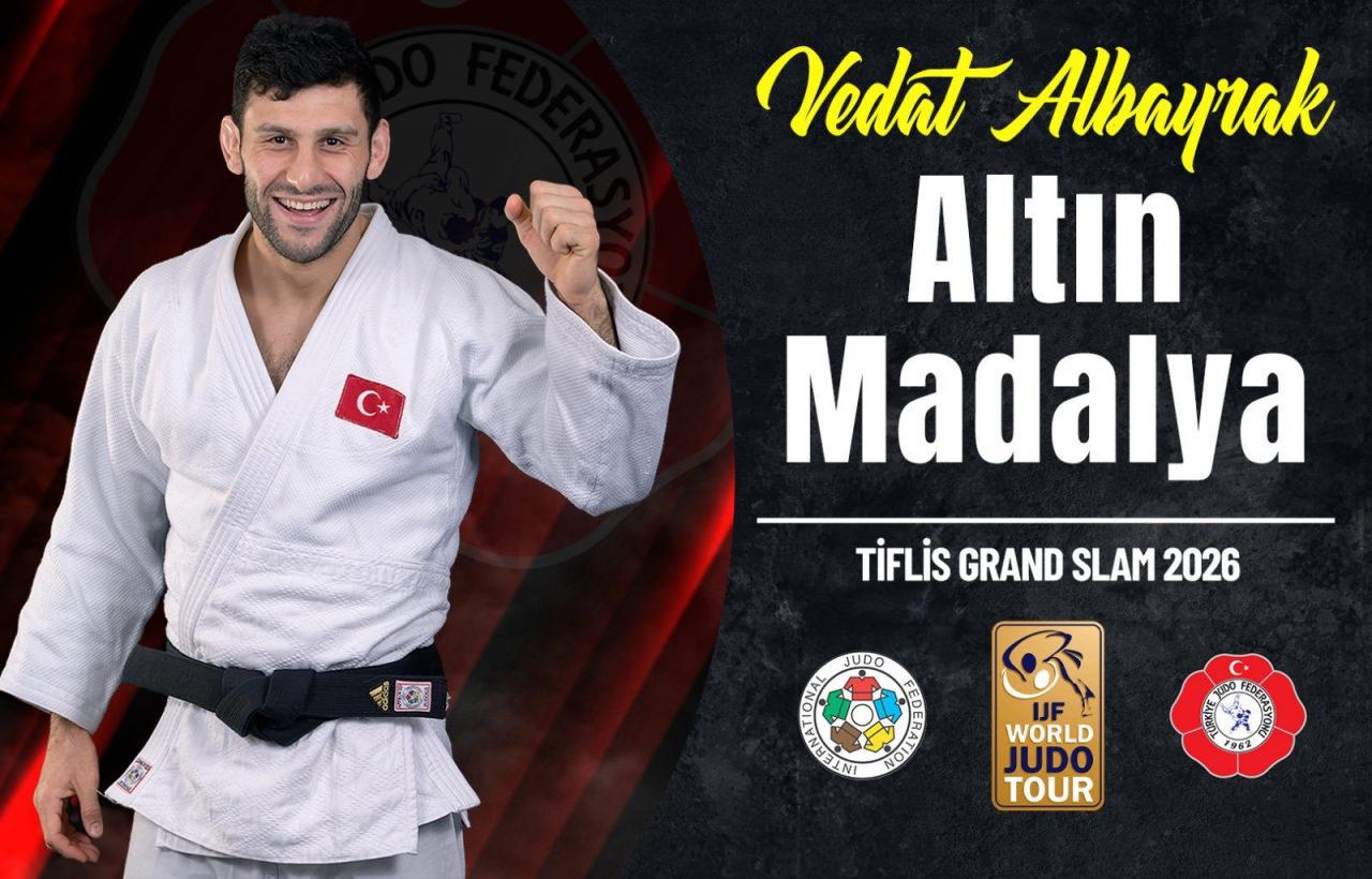 Milli judocu Vedat Albayrak, Tiflis Grand Slam Turnuvası'nda erkekler 81 kiloda altın madalya kazandı.