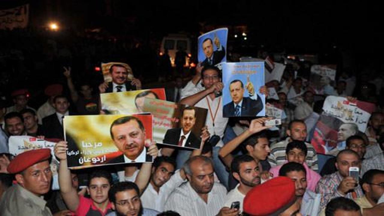 Mısırlılar, Başbakan Erdoğan'ın posterlerini de taşırlarken, zaman zaman da tekbir getirdi. ''Erdoğan, ikinci memleketi Mısır'ın kahramanı'', ''Erdoğan, hoşgeldin'', ''Mısır'a hoşgeldin Erdoğan'', ''İyi cetvel merhaba Erdoğan'' yazılı pankartlar dikkati çekerken Erdoğan'ı görmeye gelen bazı Mısırlılar ellerinde taşıdıkları Türkçe yazılı pankartlarda kelime hatası yapıp yapmadıklarını Türk gazetecilere sordu.