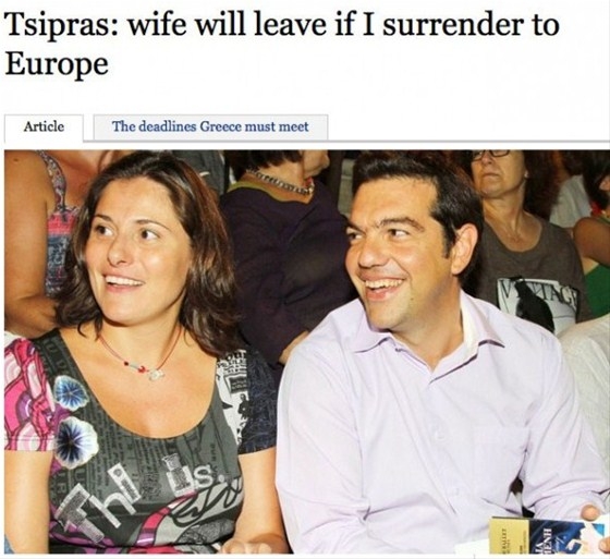 The Times gazetesinin internet sitesinde yer alan bir habere göre, Yunan Başbakanı Alexis Çipras’ın eşi Peristera Baziana, Çipras’ı IMF ve AB ile anlaşma imzalaması durumunda terk etmekle tehdit ediyor.