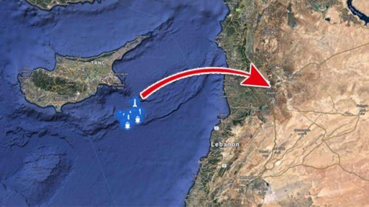 ABD savaş gemilerinin bulunduğu nokta, aynı zamanda Rusya'nın Suriye'deki üssü Tartus'un karşısında yer alıyor.
