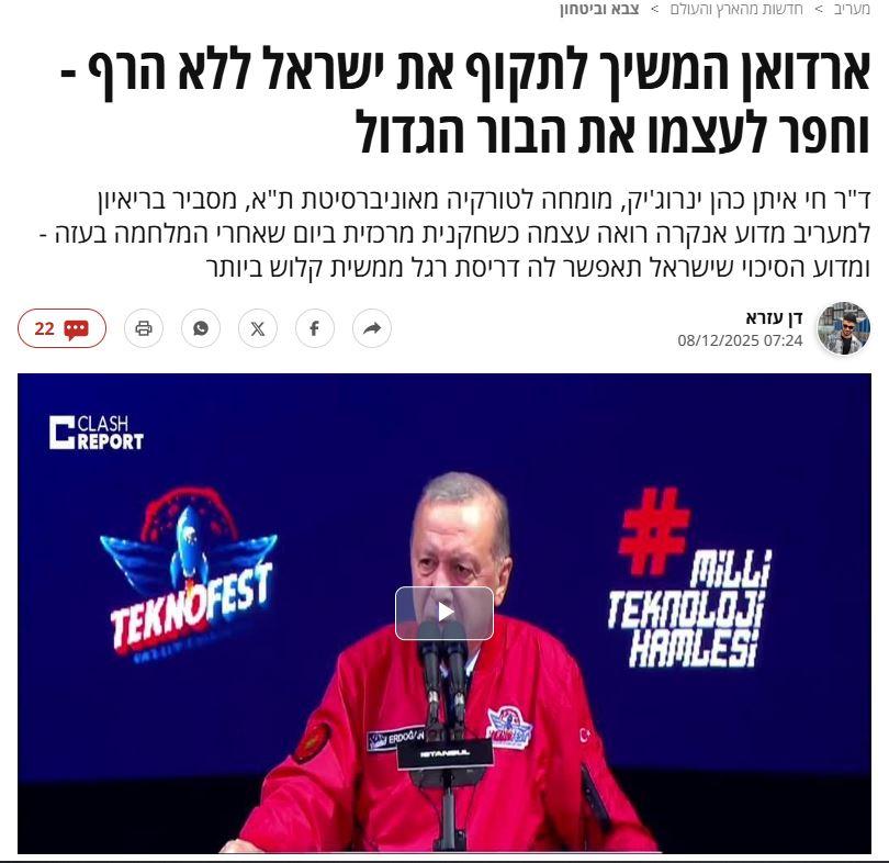 Türkiye'nin hırsı sadece Gazze ile sınırlı değil. Bu yüzden Türkler her alanda rollerini en üst düzeye çıkarmak istiyorlar ve bu Gazze'ye özgü bir şey değil, dünyadaki çoğu savaşta var, Afrika kıtasındaki (Somali) savaşlar arasında 'arabulucu' olarak müdahale etmeye çalışıyorlar. Türkiye her alana girmeye çalışıyor ve kendini bir tür süper güç olarak taçlandırmaya çalışıyor, hatta süper güçler ligine yükselmek istiyor.” dedi.