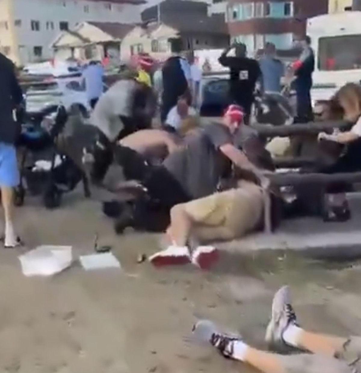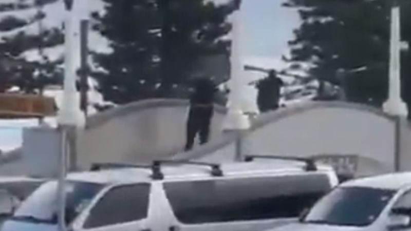 Sosyal medyada paylaşılan bir video, silahlı iki kişinin otoparkın üzerindeki bir köprüden sahile doğru ateş açtığını gösteriyor. Köprü, çocuk parkının 50 metre ötesinde.