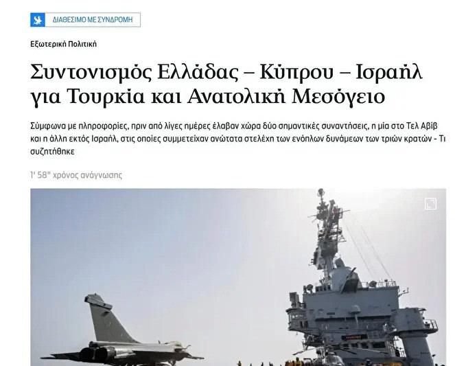 Yunanistan'da yayın yapan Kathimerini gazetesinde yer alan habere göre; İsrail, Türkiye’nin bölgede yükselen gücünden duyduğu kaygı nedeniyle Yunanistan ve Güney Kıbrıs Rum Yönetimi (GKRY) ile temaslarını yoğunlaştırdı.