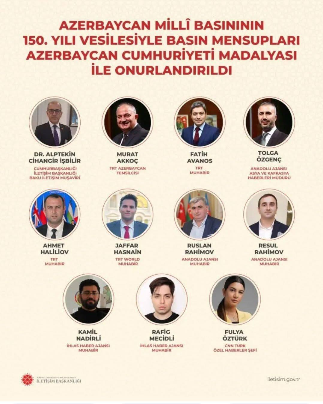 İhlas Haber Ajansı (İHA) muhabirleri Kamil Nadirli ile Rafig Mecildi de madalya alırken, TRT World ve CNN Türk'ten muhabirler de madalya ile ödüllendirildi.