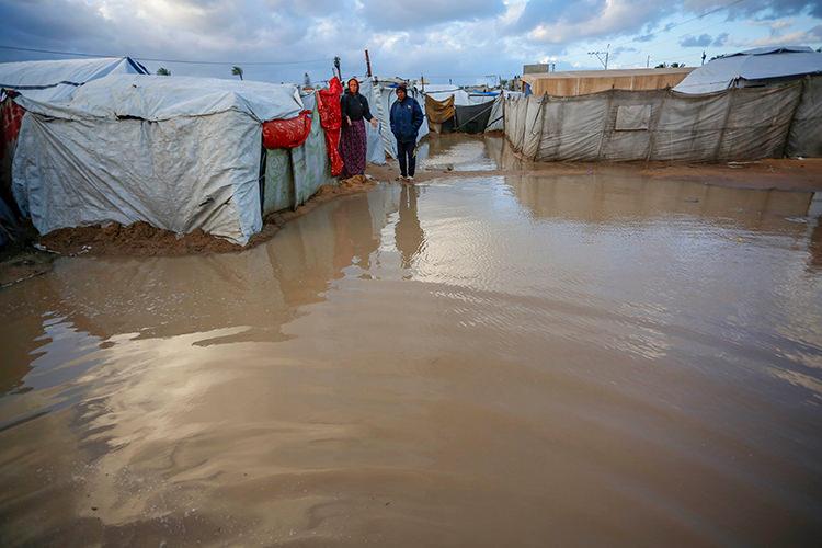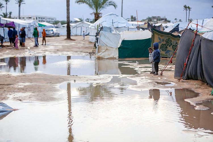 "Gazze Şeridi'nde Filistinlilerin sığındığı çadırların yüzde 90'ı su altında kaldı veya fırtılarda parçalandı. Soğuk hava dalgasının sürdüğü Gazze Şeridi'nde etkili olan sağanaklar nedeniyle binlerce Filistinli ailenin geçici barınakları olan çadırları kaybetti."