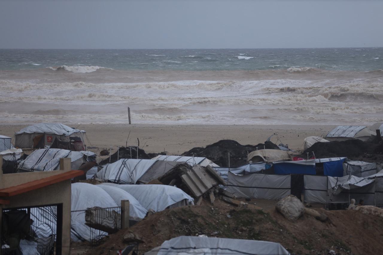Gazze’nin güneyindeki Han Yunus kentinde, sahil şeridi boyunca kurulan yüzlerce çadır, alçak basınçla birlikte yükselen deniz seviyesi ve kuvvetli dalgalar nedeniyle su altında kaldı. Deniz taşkınları, zaten sınırlı olan eşyaların ve yardım malzemelerinin büyük bölümünün kullanılamaz hale gelmesine yol açtı.