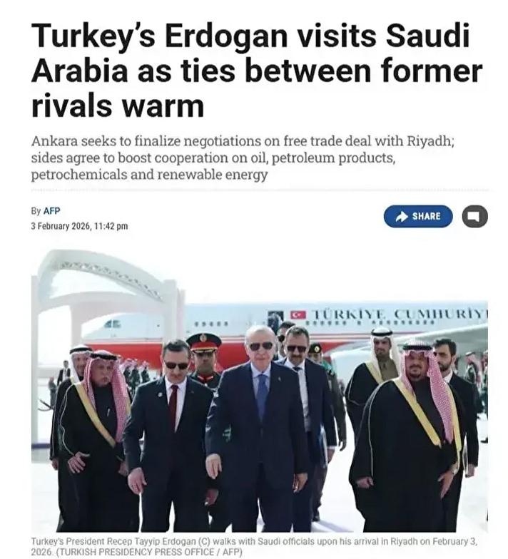 “Ankara, Riyad ile serbest ticaret anlaşması müzakerelerini sonuçlandırmak istiyor; taraflar petrol, petrol ürünleri, petrokimya ve yenilenebilir enerji alanlarında iş birliğini artırma konusunda anlaştı. Türkiye ve Suudi Arabistan arasındaki ilişkiler son yıllarda istikrarlı bir şekilde toparlandı ve iki ülke çeşitli diplomatik konularda altın iş birlikleri yapıyor."