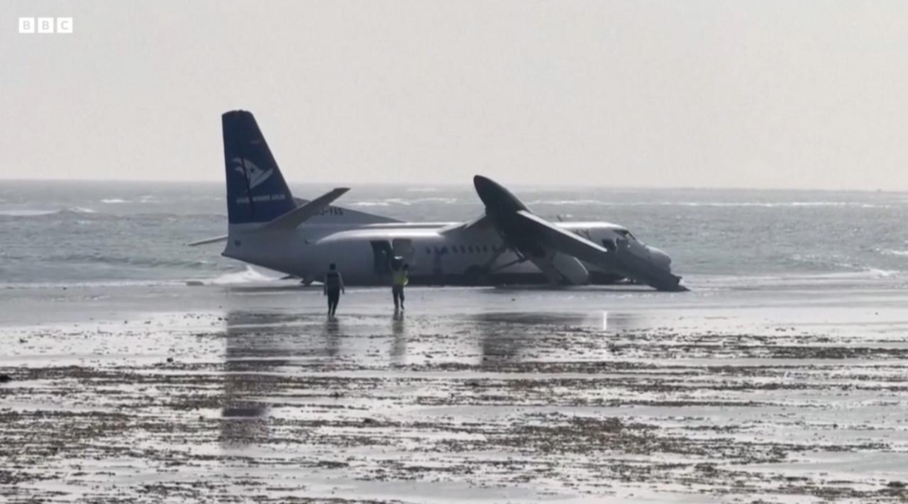 Olay yerinden paylaşılan görüntülerde, uçağın kıyıya yakın sığ sularda durduğu görülüyor. Kazanın ardından bölgede kısa süreli hareketlilik yaşandı.