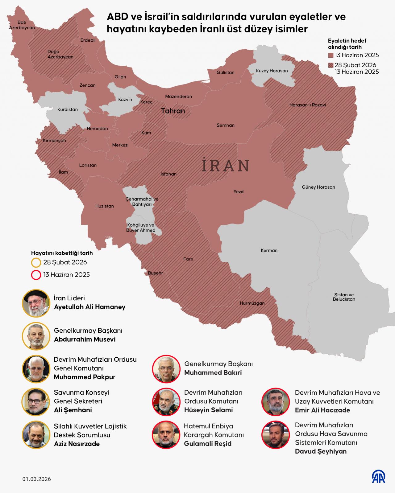 ABD-İsrail saldırılarında, İran lideri Ali Hamaney'in yanı sıra çok sayıda üst düzey yetkili öldü.