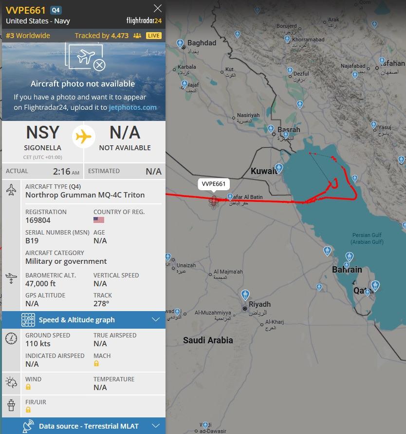Ancak kamuya açık veri kaynaklarından edinilen bilgilere göre ise ABD Donanması, Basra Körfezi’nin kuzeyindeki devriyelerinin Harg adasını izlemek için MQ-4C Triton istihbarat, gözetleme ve keşif İHA’sı kullandığı görüldü.