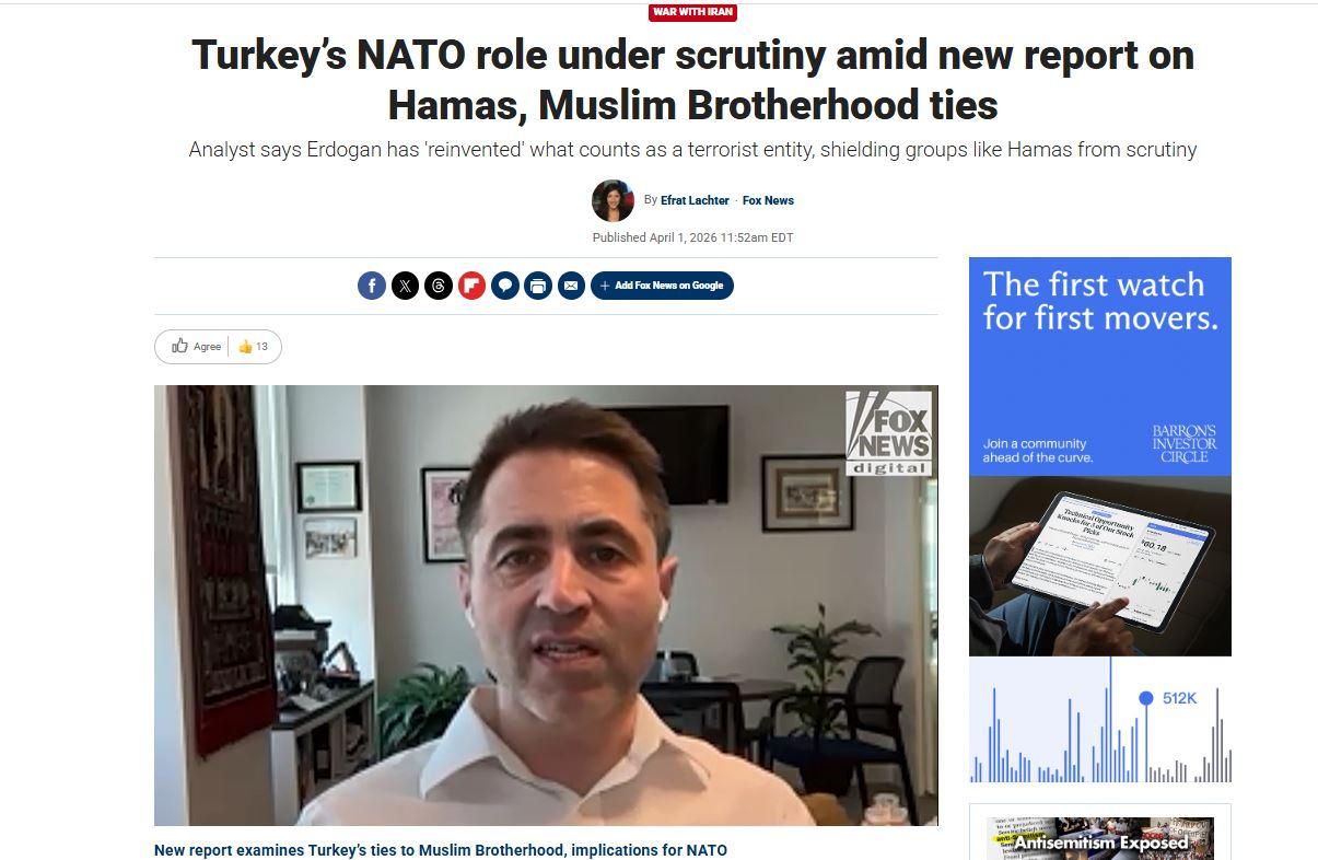 Cumhurbaşkanı Recep Tayyip Erdoğan’ın ise batı ittifakından uzaklaştığını, Hamas ve Müslüman Kardeşler ile yakınlık kurduğunu belirten ABD merkezli FOX News, “Hamas ve Müslüman Kardeşler arasındaki bağlara ilişkin yeni raporun ardından Türkiye’nin NATO’daki rolü mercek altına alındı” başlıklı haber yayımladı.