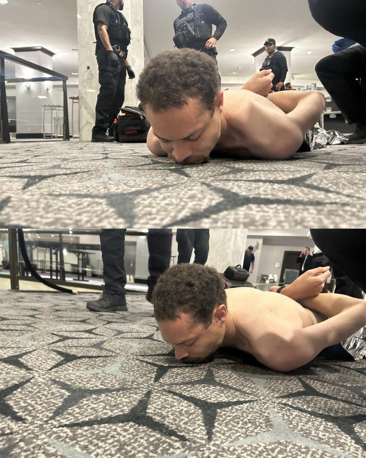 Güvenlik bariyerlerini yıkarak Trump'ın oturduğu masaya ulaşan güvenlik birimleri, ABD Başkanı ve eşi Melania Trump'ı hızla aralarına alarak salondan uzaklaştırdı.