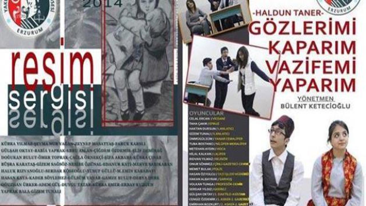 Atatürk Anadolu Lisesi öğrencilerinin hazırladığı ve yönetmenliğini Edebiyat öğretmenlerinden Bülent Ketecioğlu'nun yaptığı 'Gözlerimi Kaparım, Vazifemi Yaparım' adlı tiyatro oyunu 2 Haziran Pazartesi günü saat 17.00'de Devlet tiyatrolarında sahnelenecek. 5-7 Haziran günlerinde ise Görsel Sanatlar öğretmeni Selahattin Alyap ve öğrencilerinin hazırladığı 'resim sergisi' Erzurum AVM Kültür Merkezi salonunda sergilenecek.