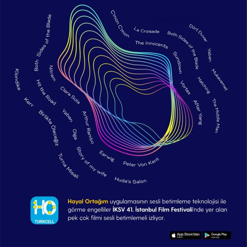 İstanbul Kültür Sanat Vakfı (İKSV) tarafından 8-19 Nisan tarihleri arasında gerçekleştirilecek 41’inci İstanbul Film Festivali, bu yıl da görme engelli festival takipçilerine kapılarını açacak. Erişilebilirlik uygulamalarında dünyada öncü şirketlerden biri olan Turkcell’in Hayal Ortağım uygulamasındaki sesli betimleme teknolojisi, 9’u Ulusal Yarışma'da yer alan, 18’i ise diğer bölümlerden olmak üzere toplam 27 filmin sesli betimlemesini görme engelli festival takipçileriyle buluşturacak. Bu sayede görme engelliler de festivaldeki önemli pek çok yapıtı sinema salonlarında, herkesle aynı anda, hiçbir görsel detayı kaçırmadan izleme fırsatı yakalayacak.