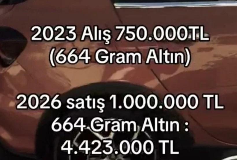 Aynı dönemde otomobil fiyatlarındaki artışın sınırlı kalması, geçmişte “yatırım aracı” olarak görülen otomobilin bu özelliğini büyük ölçüde yitirdiğine işaret etti. Sosyal medyada yapılan karşılaştırmalarda, geçmiş yıllarda otomobil almak yerine altına yönelenlerin bugün milyonlarca liralık farkla avantaj sağladığı hesaplamalar öne çıktı.