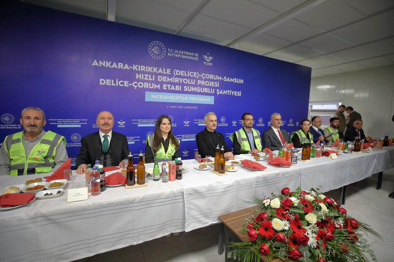Ulaştırma ve Altyapı Bakanı Abdulkadir Uraloğlu, Ankara-Kırıkkale-Çorum-Samsun Hızlı Tren Hattı’nın Delice-Çorum şantiyesinde çalışanlarla iftarda bir araya geldi. Uraloğlu, iftar öncesinde hatta devam eden çalışmaları yerinde inceledi.