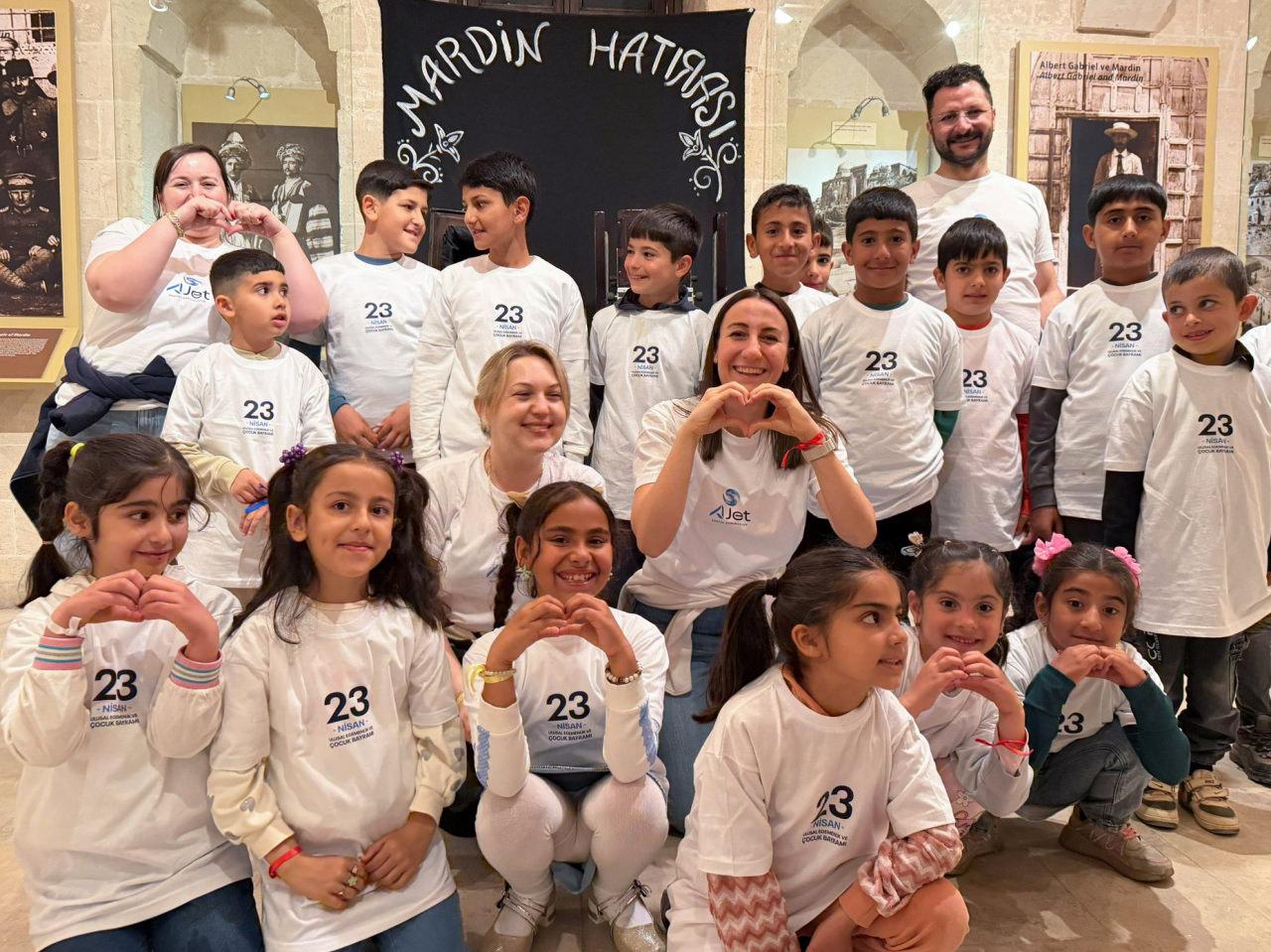Öğretmenleri eşliğinde Mardin şehir merkezini keşfeden çocuklar, Sakıp Sabancı Mardin Kent Müzesi'ni ziyaret etti. Gün boyunca oyun alanlarında gönüllerince eğlenen çocuklara, AJet'in sınırlı sayıda üretilen özel peluş oyuncak setleri ve uçak maketleri hediye edildi.