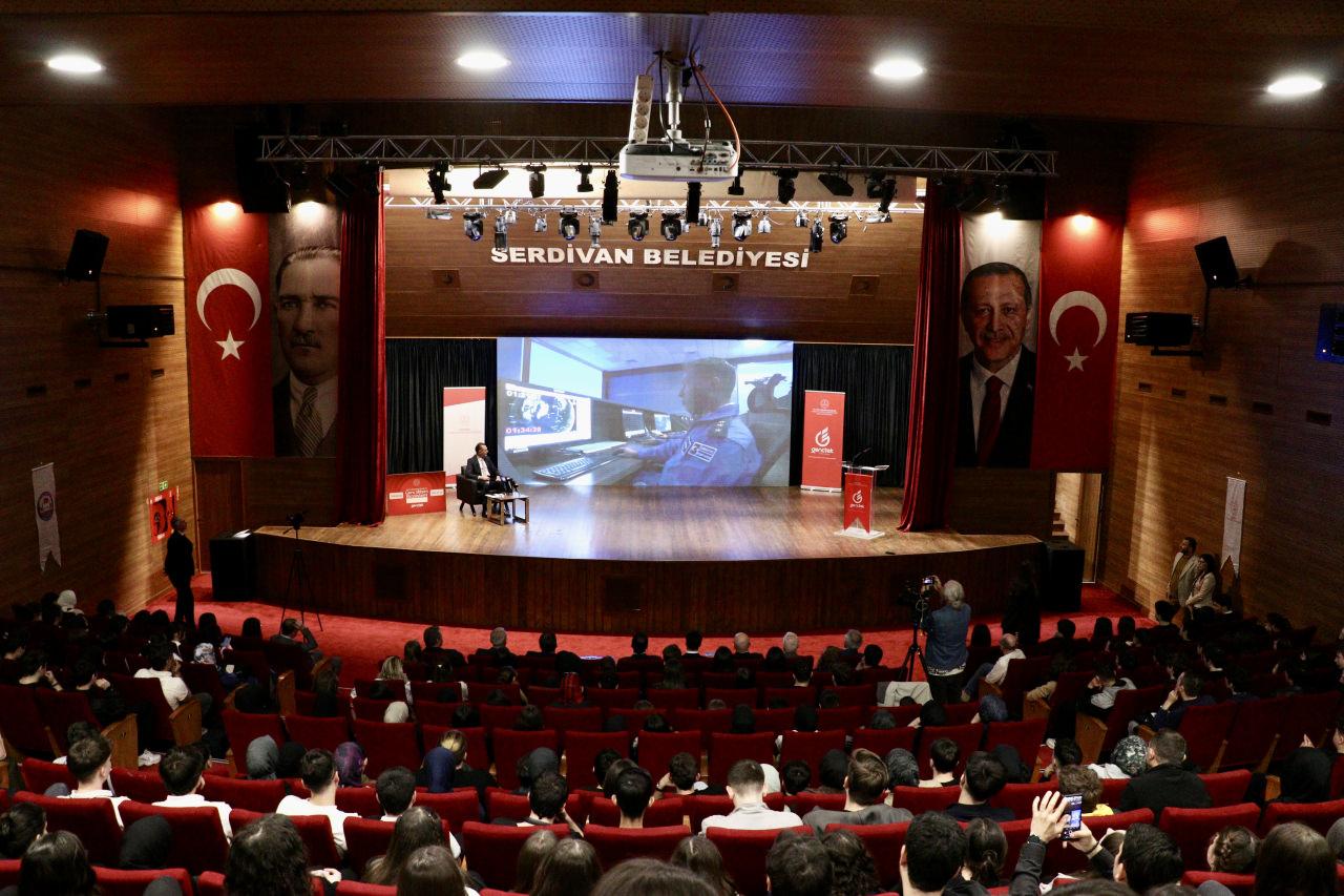 İl Milli Eğitim Müdürlüğünce Serdivan Belediyesi Kültür ve Kongre Merkezi'nde düzenlenen programda öğrencilerle bir araya gelen Kıraç, uzay çalışmalarından bahsetti.