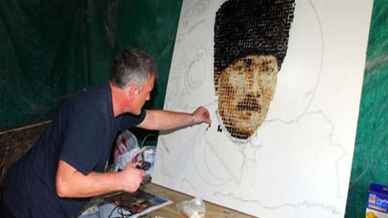 Tost ekmeğinden yaptığı tablolarla dünya çapında tanınan İngiliz sanatçı Lennie Payne, çocuk onkoloji merkezinin yapımına katkı bu kez pideden Atatürk portresi yaptı.