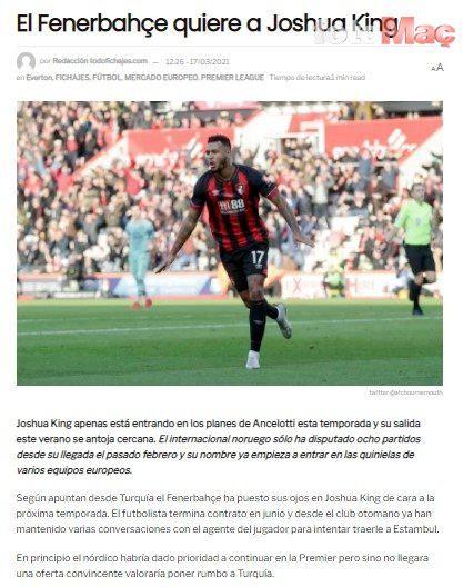 İngiliz basınında yer alan habere göre Fenerbahçeli yetkililer, Joshua King'in menajeriyle ve kendisiyle temasta bulundu.